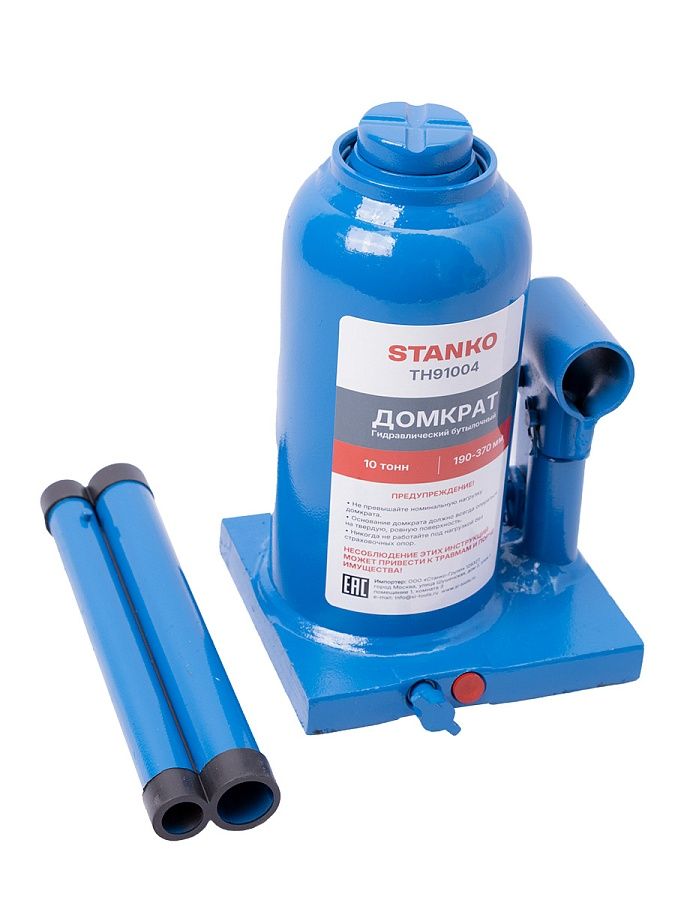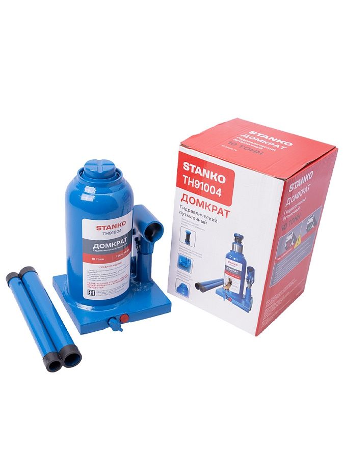 Домкрат бутылочный грузоподъемностью до 10 тонн используется при ремонте и техническом обслуживании транспортных средств, для поднятия тяжестей при строительстве или ремонтных работах.