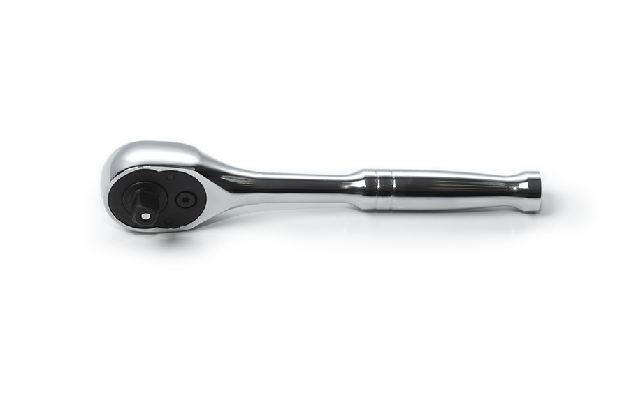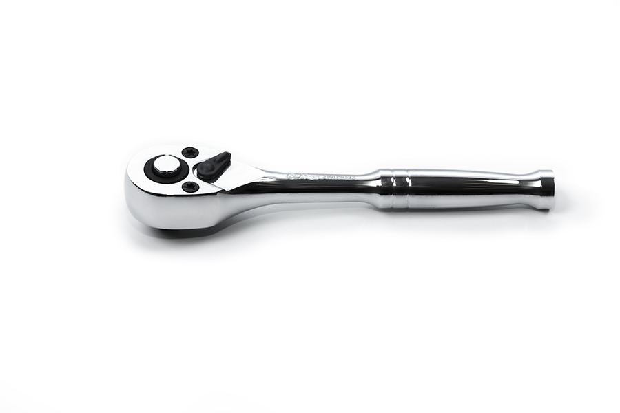 Трещотка с храповым механизмом отличается простотой и удобством в применении. Трещоточный механизм ключа позволит работать им, не отрывая от закручиваемой детали. Ребристая насечка на ручке не позволяет инструменту скользить. Имеет флажок реверса и кнопку быстрого сброса.