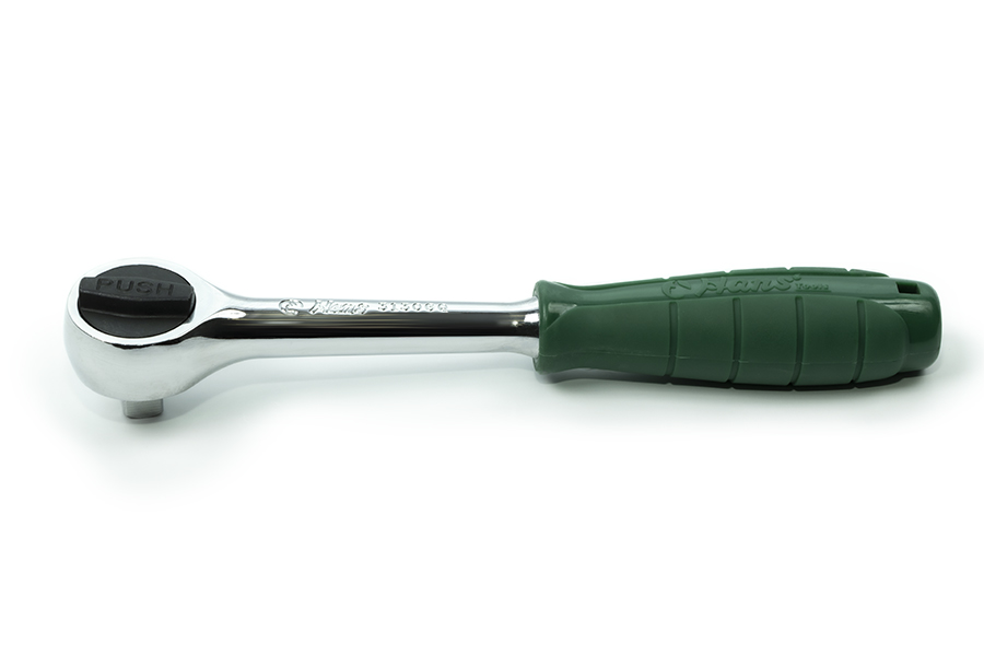 Трещотка с храповым механизмом и круглой головкой отличается простотой и удобством в применении. Трещоточный механизм ключа позволит работать им, не отрывая от закручиваемой детали. Резиновая накладка на ручке не позволяет инструменту скользить. Имеет кнопку быстрого сброса.